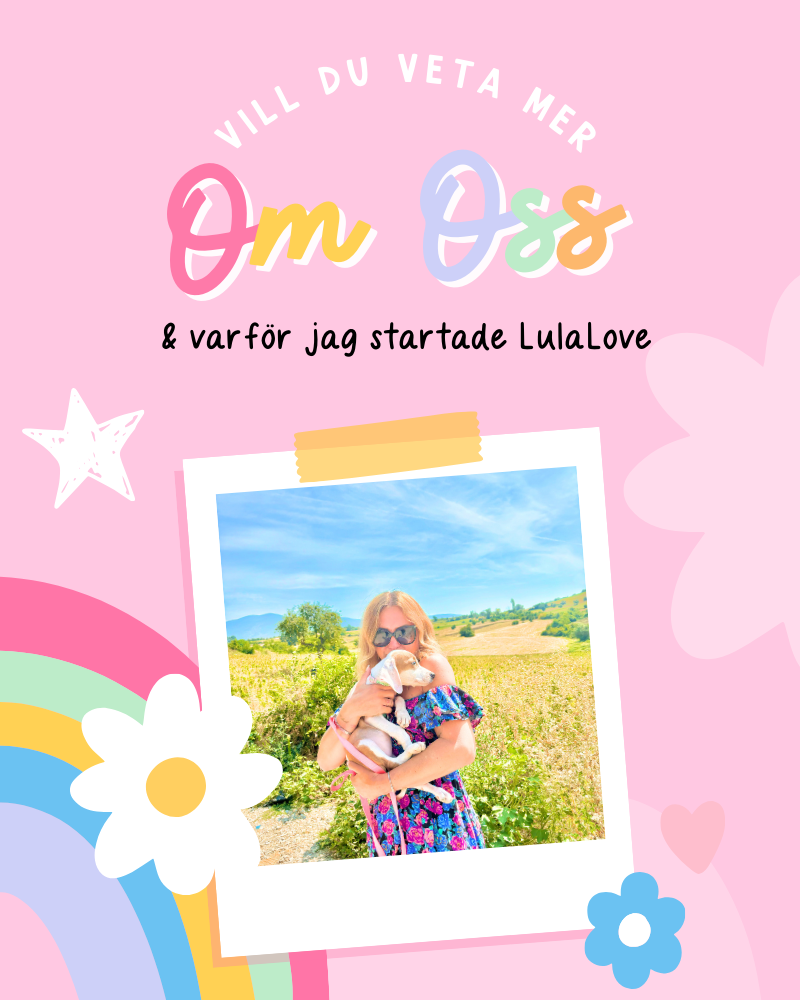 Jag är djupt engagerad i att hjälpa gatu hundar eller/och misshandlade hundar att hitta kärleksfulla hem. Det är därför en del av varje köp går direkt till djurhem och räddningsorganisationer. Så när du handlar på LulaLove skämmer du inte bara bort din hund – du hjälper till att rädda ett liv. Minst 10 % av alla intäkter går till Libras Hundhjälp (@librashundhjalp) (www.LibrasHundhjalp.com), som hjälper hundar i nöd främst på Balkan. Vi ger också till andra djurhem och platser, vart vårt hjärta än tar oss.